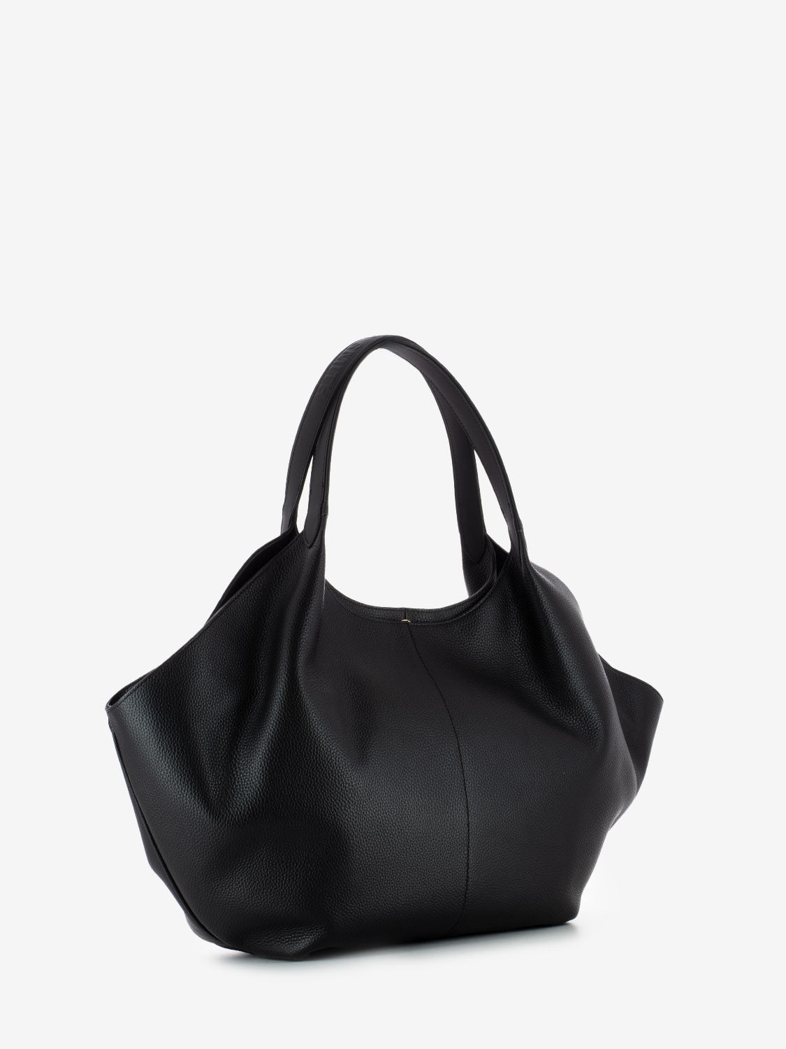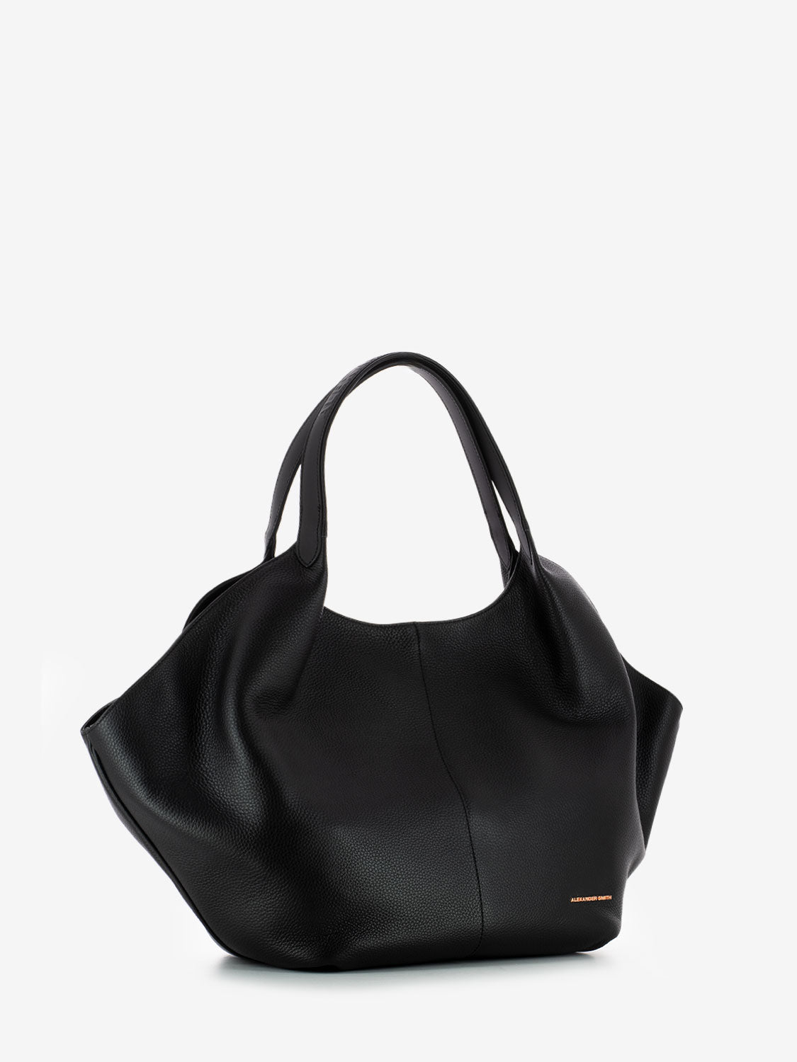 Shopper dai volumi morbidi in pelle bottalata firmata Alexander Smith impreziosita da logo metallico in rame.