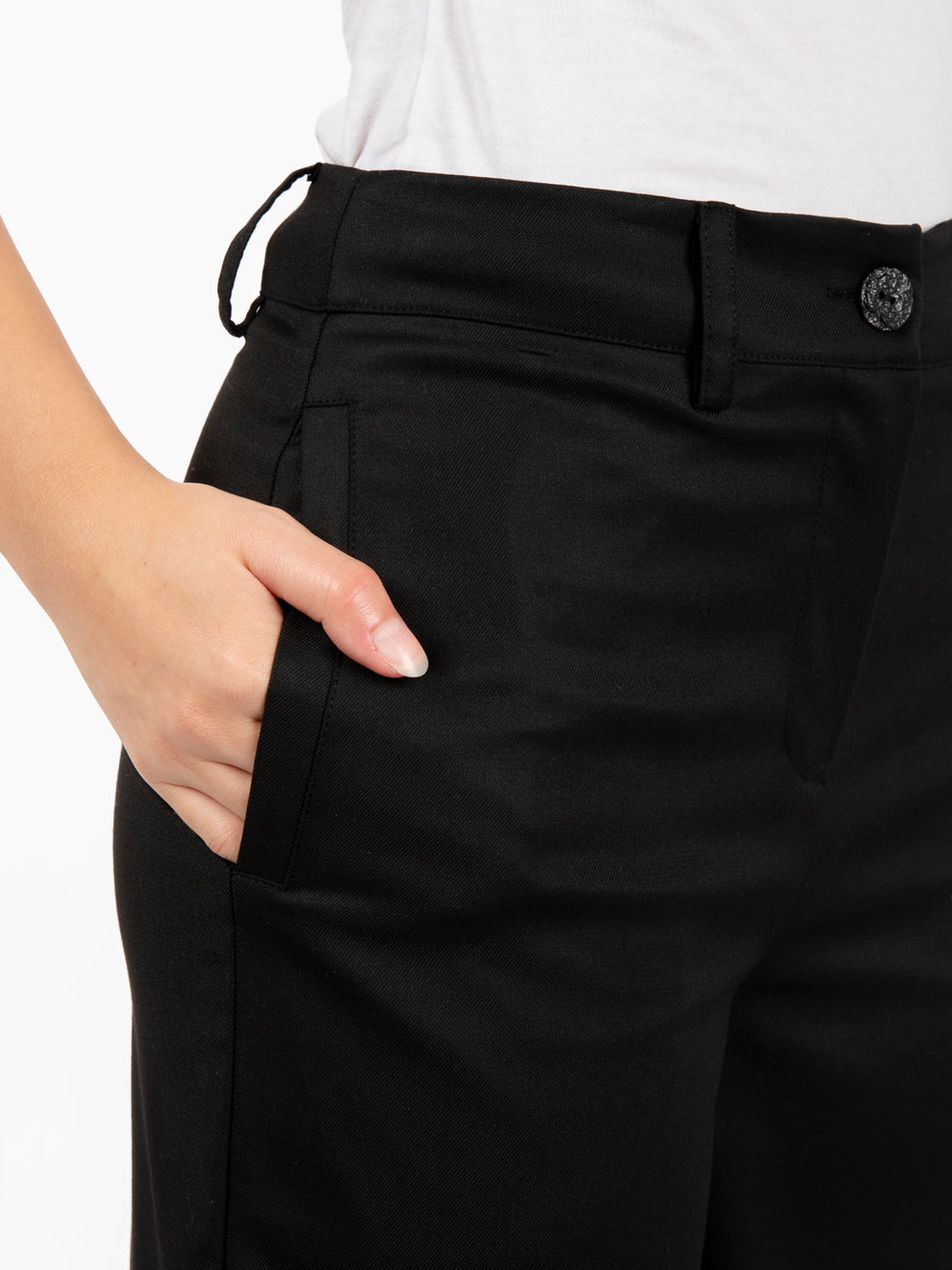 Vita alta, chiusura con zip e bottone.