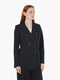 Blazer sfoderato con rever a lancia e chiusura doppiopetto.
