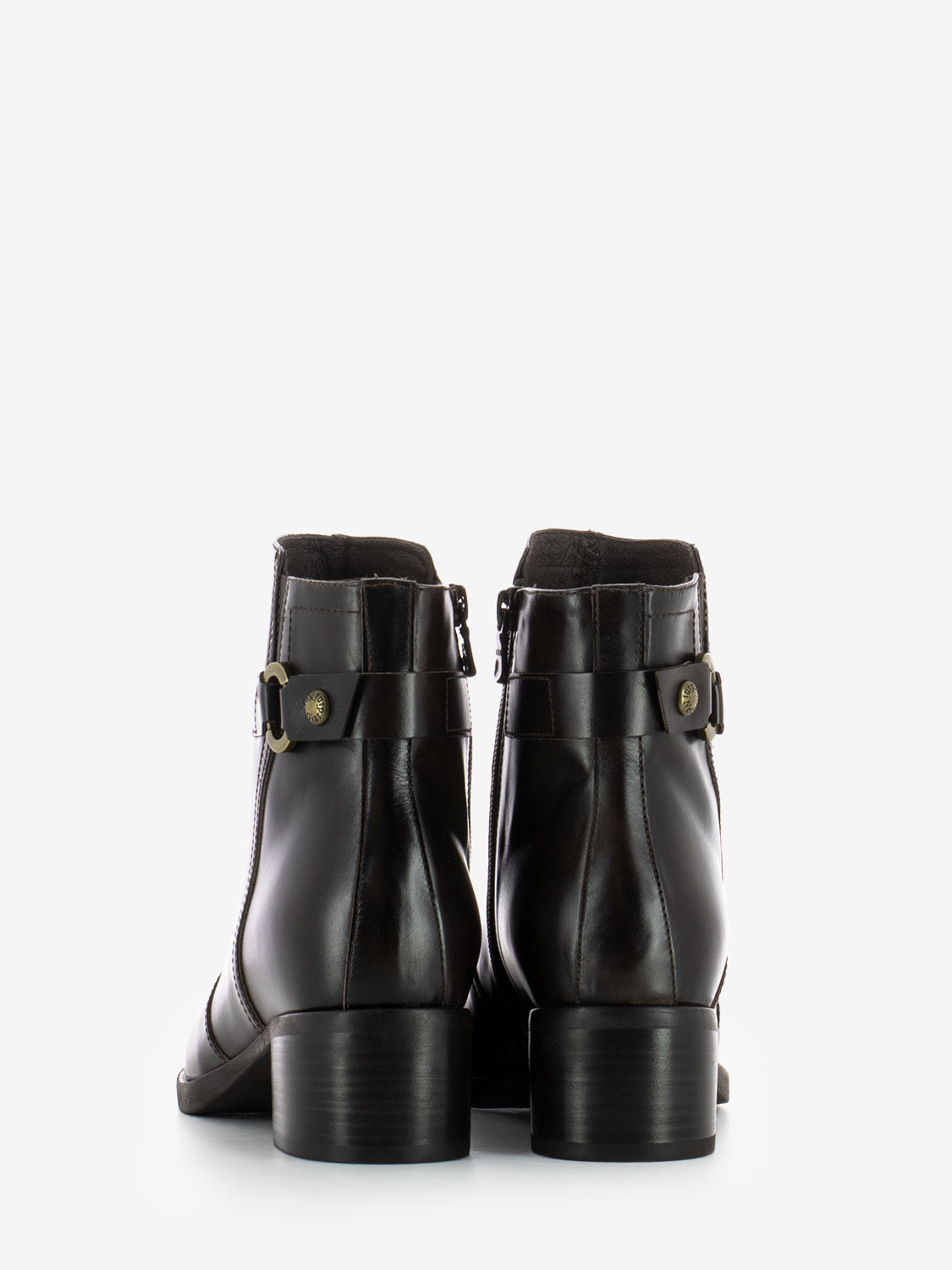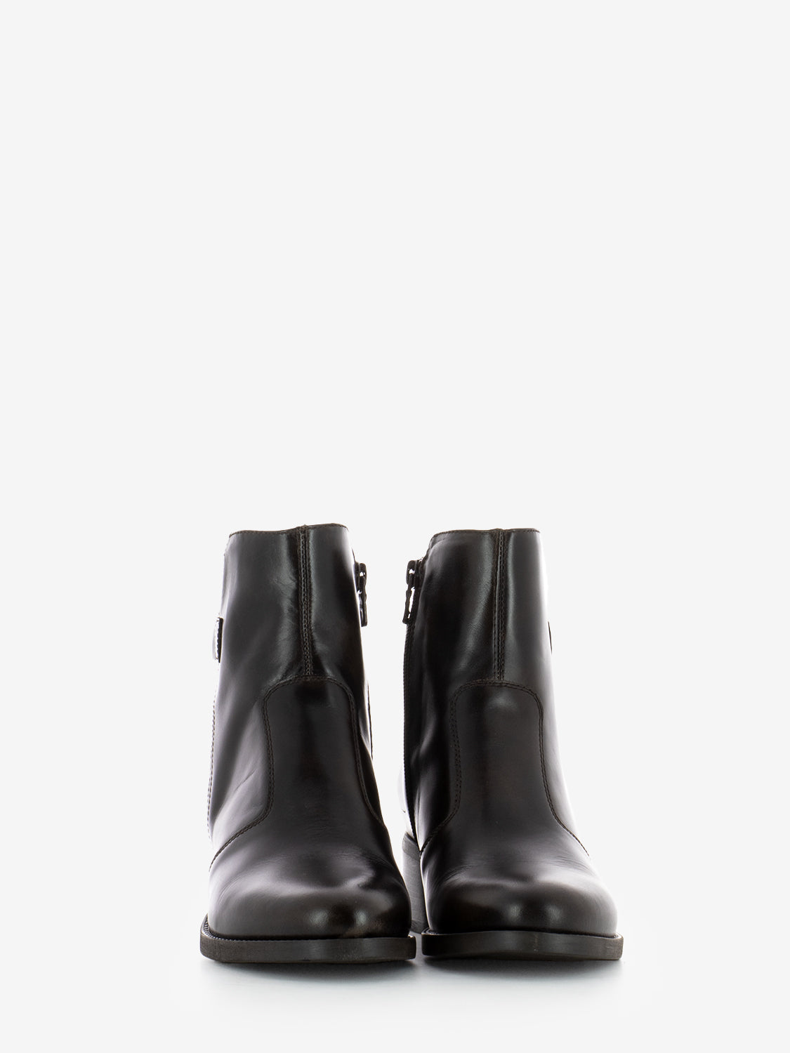 Stivaletto con tacco firmato Nero Giardini caratterizzato da chiusura con cerniera laterale e cinturino con accessorio logato sopra la caviglia.