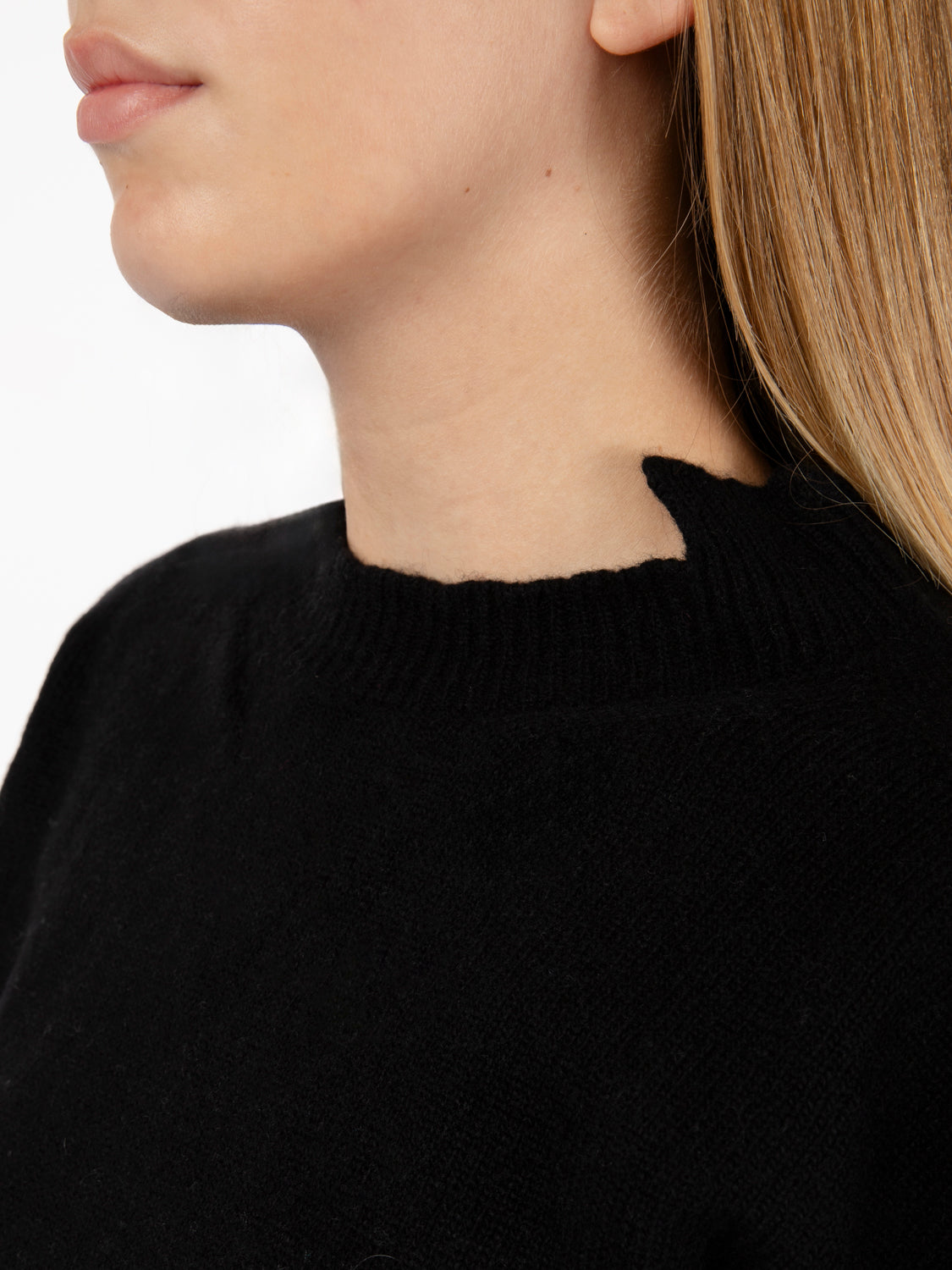 Scollo a cratere con dettaglio asimmetrico, maniche lunghe raglan.