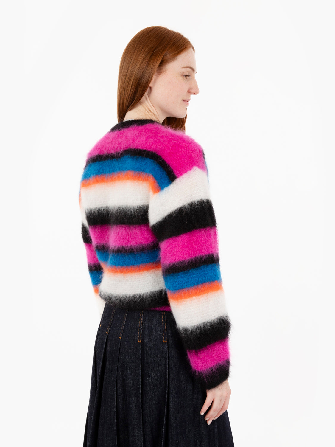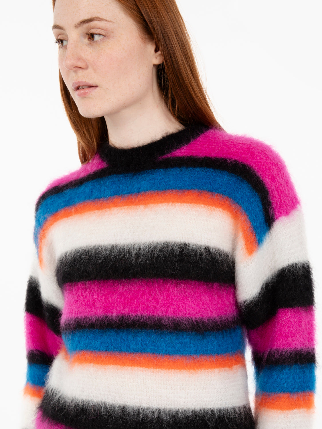 Solotre Maglione in misto mohair a righe blu / arancio / fuxia
