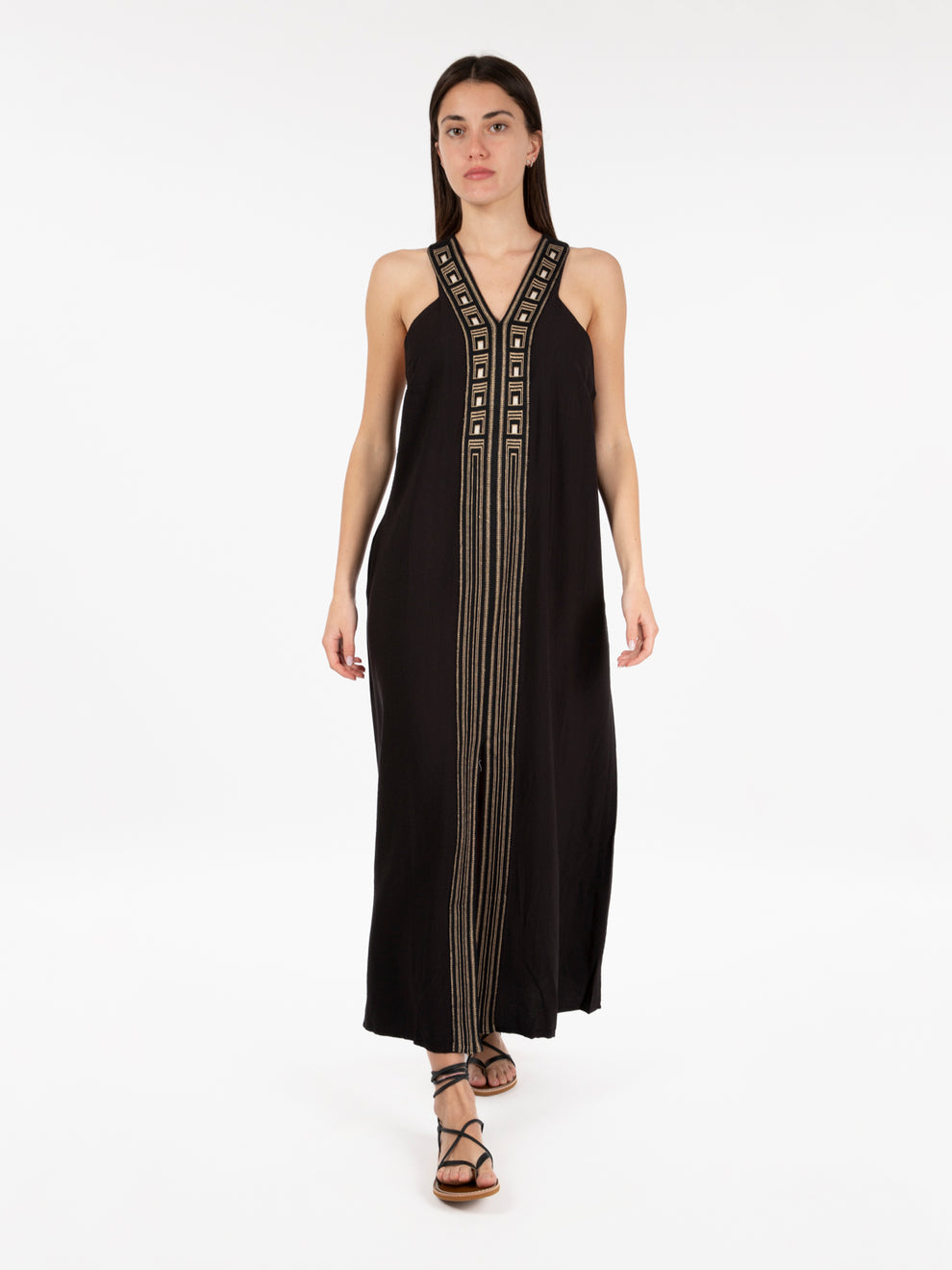 Aggel Knitwear Abito lungo con decorazione frontale black / oro