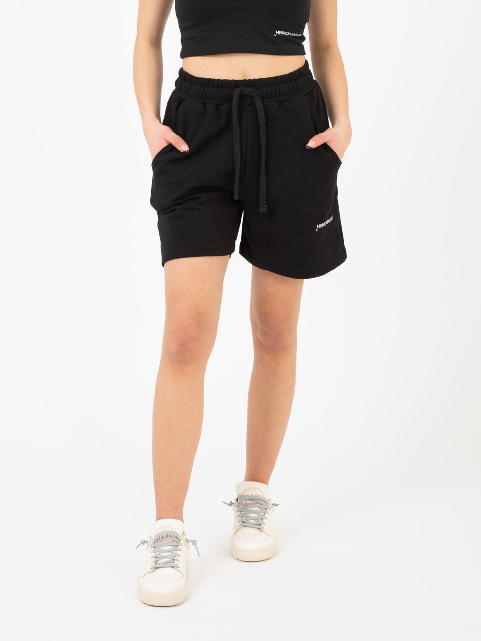 Hinnominate Black Printed Fleece Bermuda Shorts