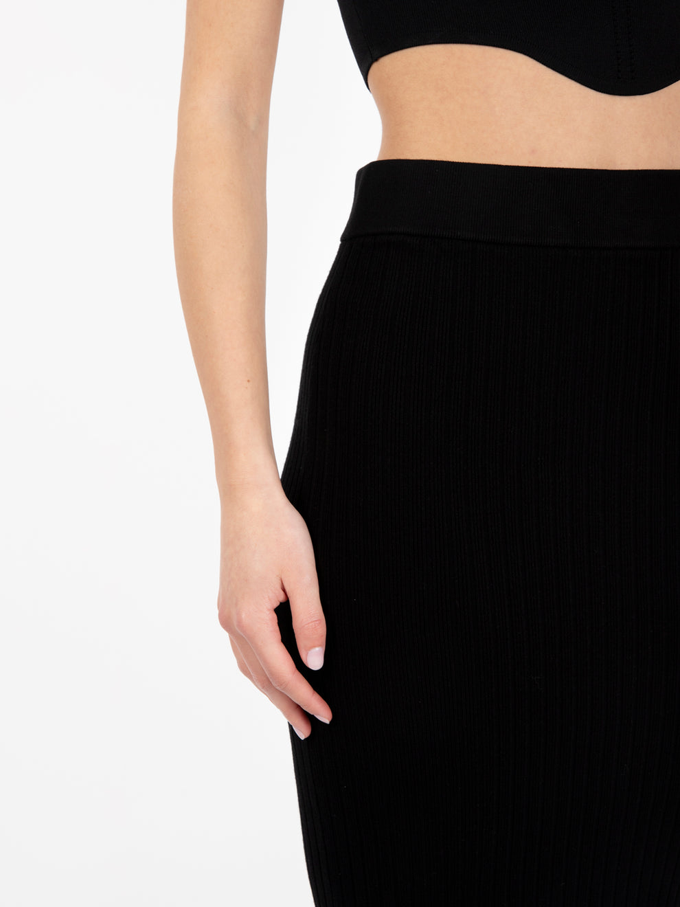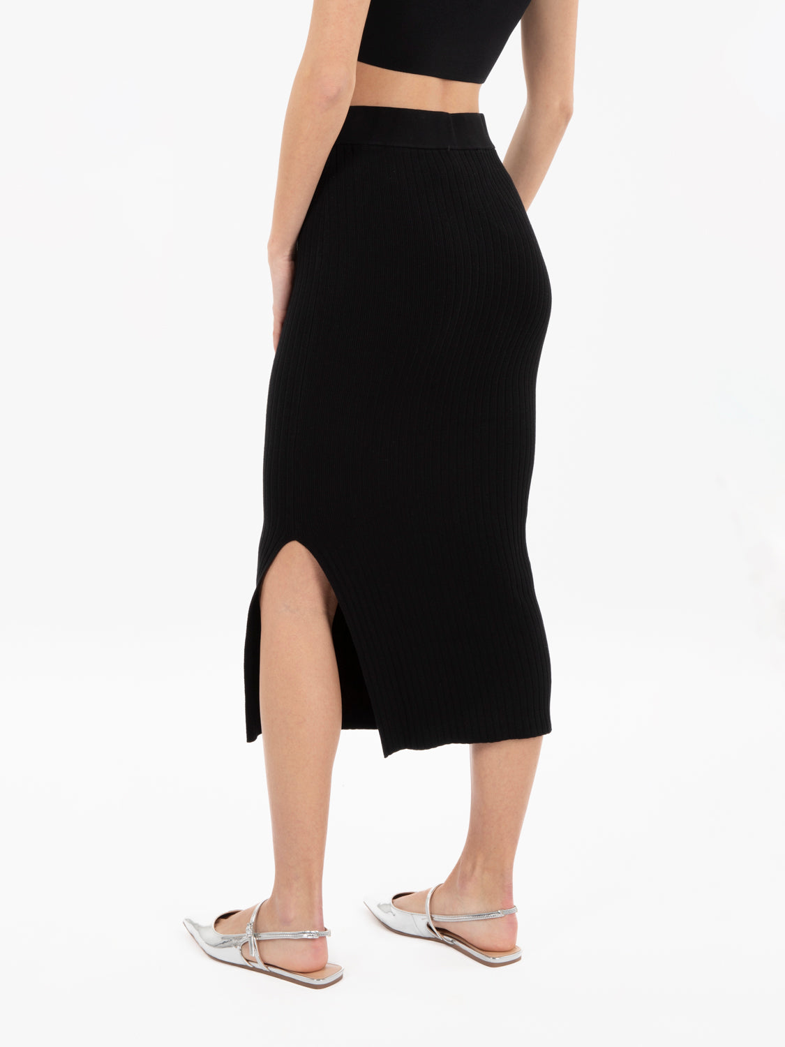 Solotre Black ribbed midi skirt