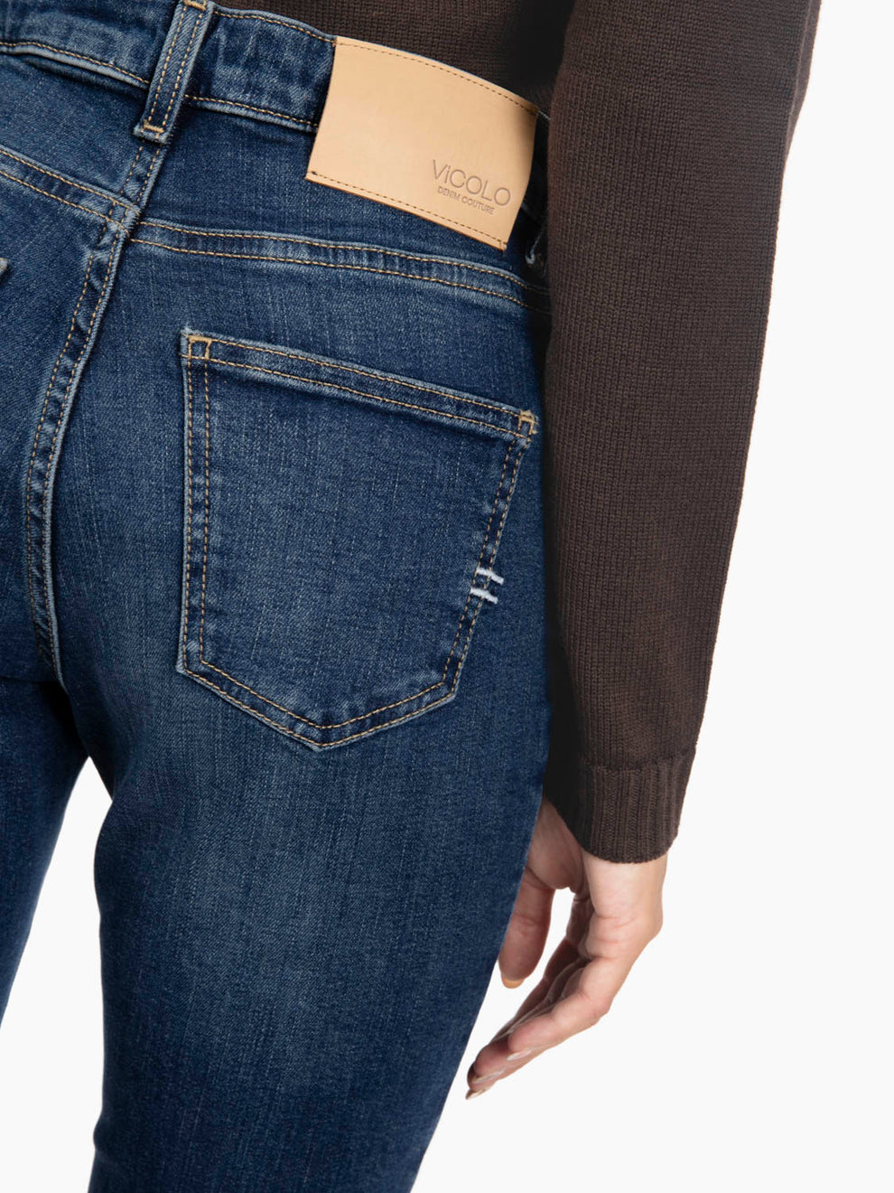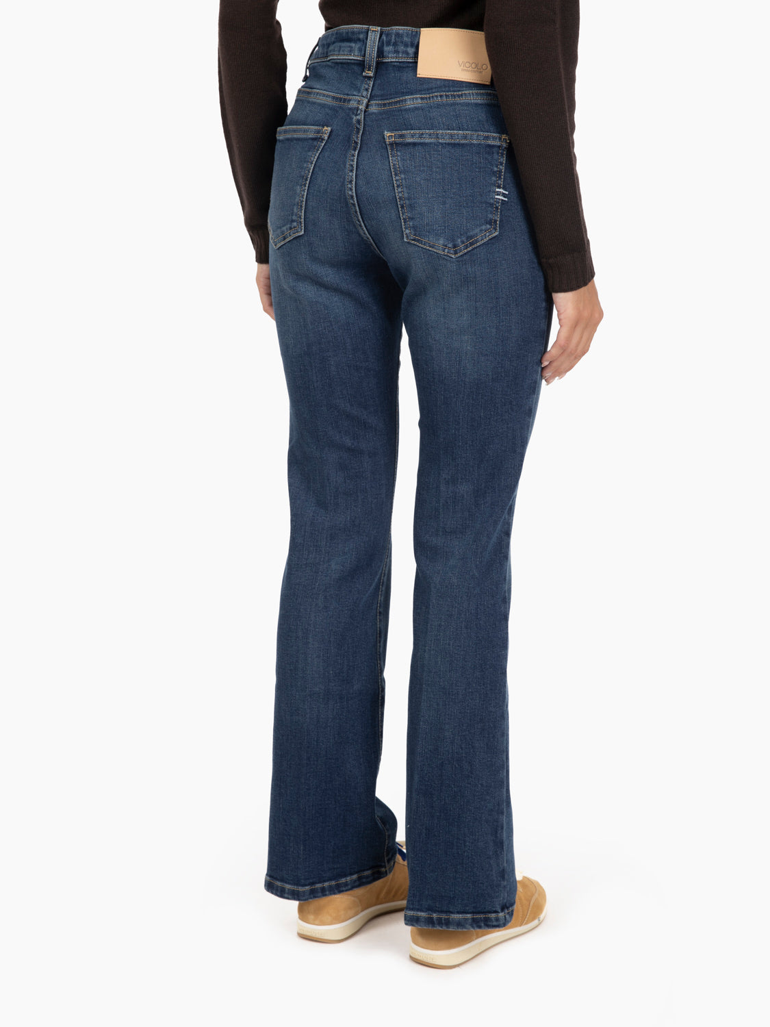 Vicolo low-rise trumpet jeans with ironed crease in the center.