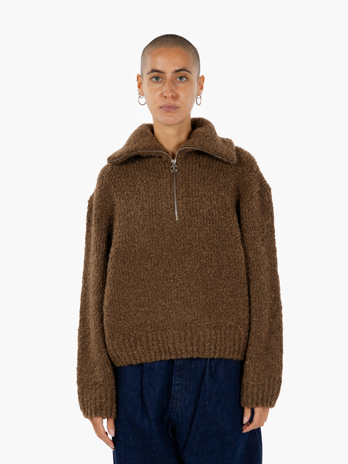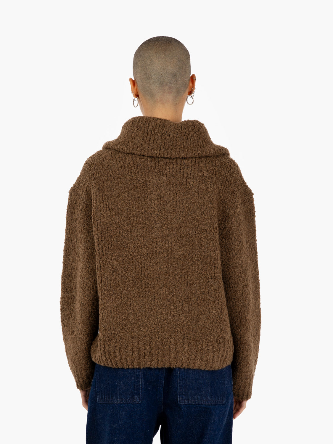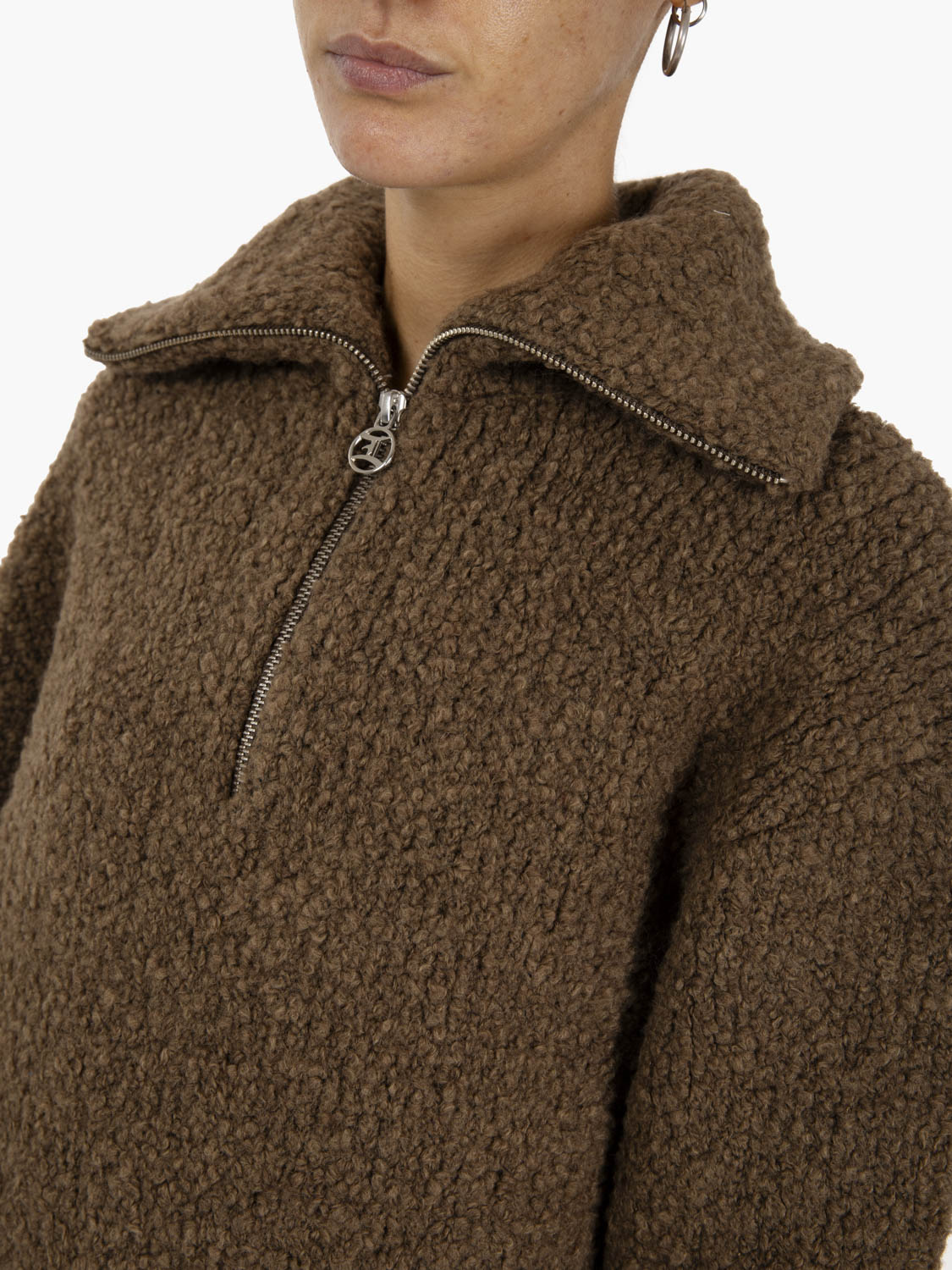 Maglione effetto teddy dalla vestibilità squadrata firmato Edwin,k caratterizzato da collo alto con cerniera.