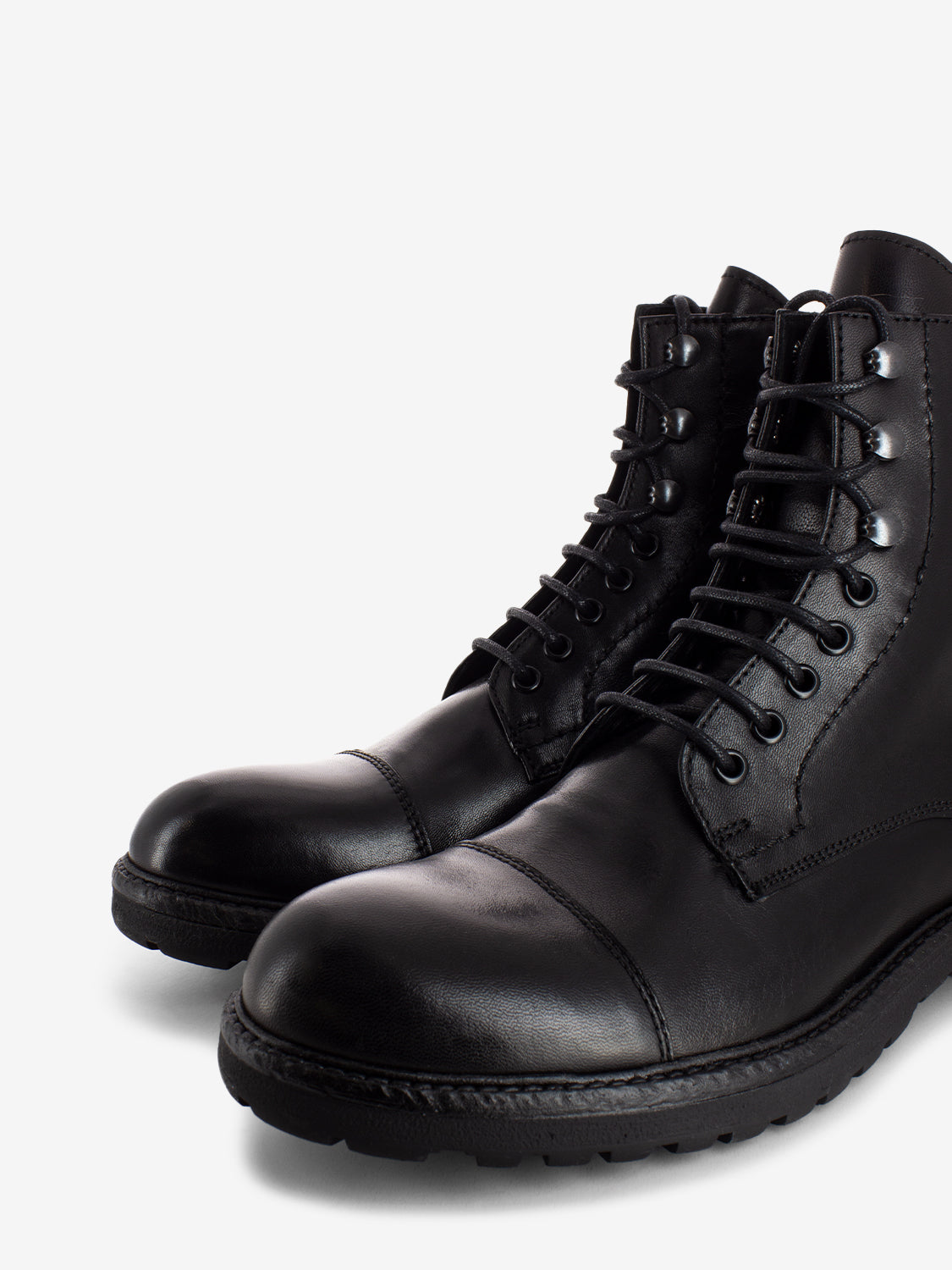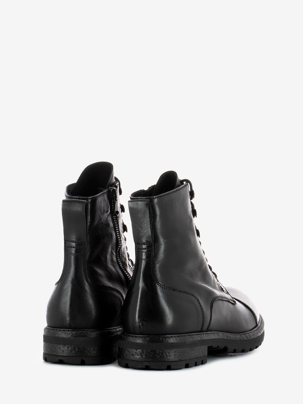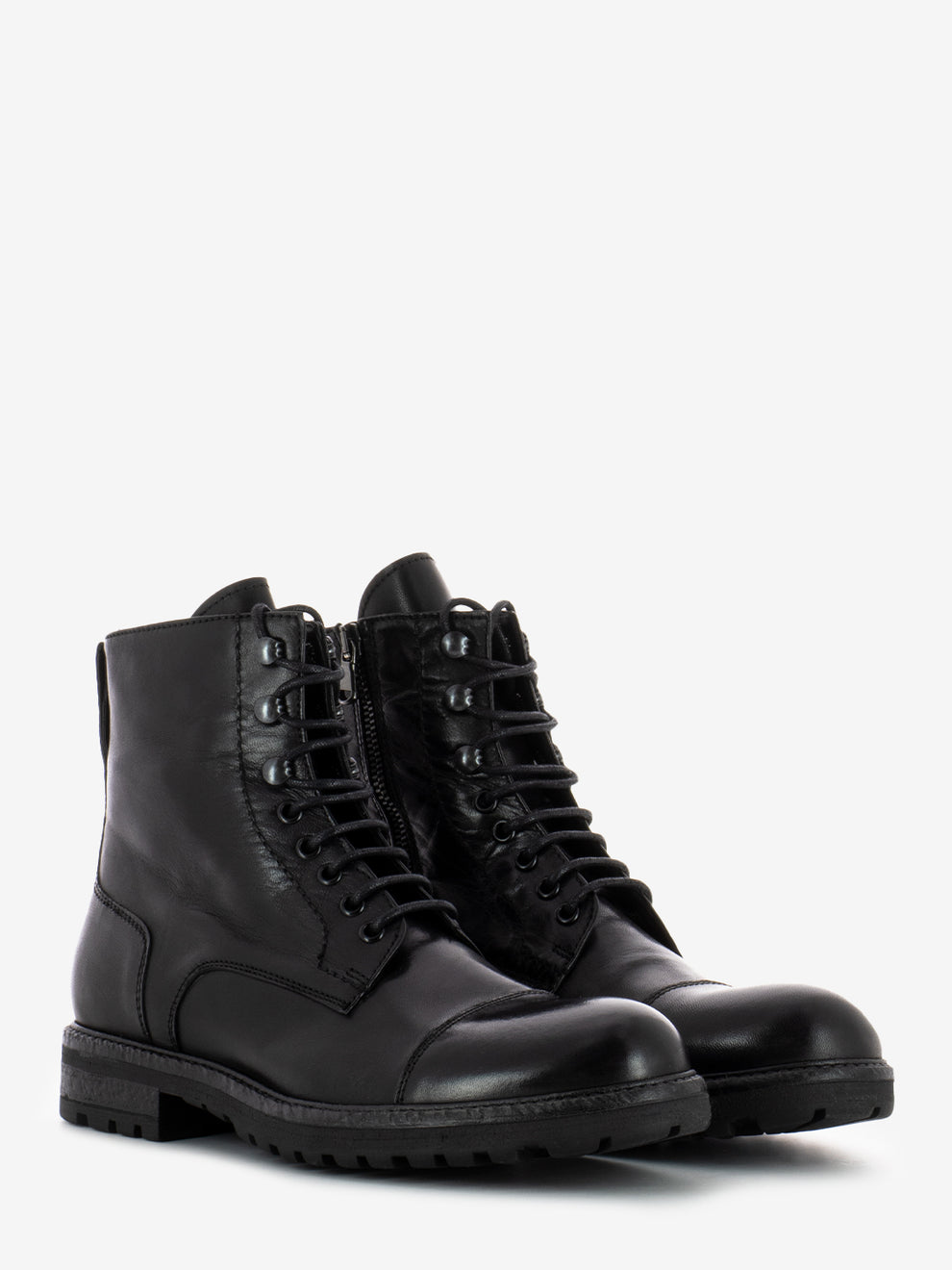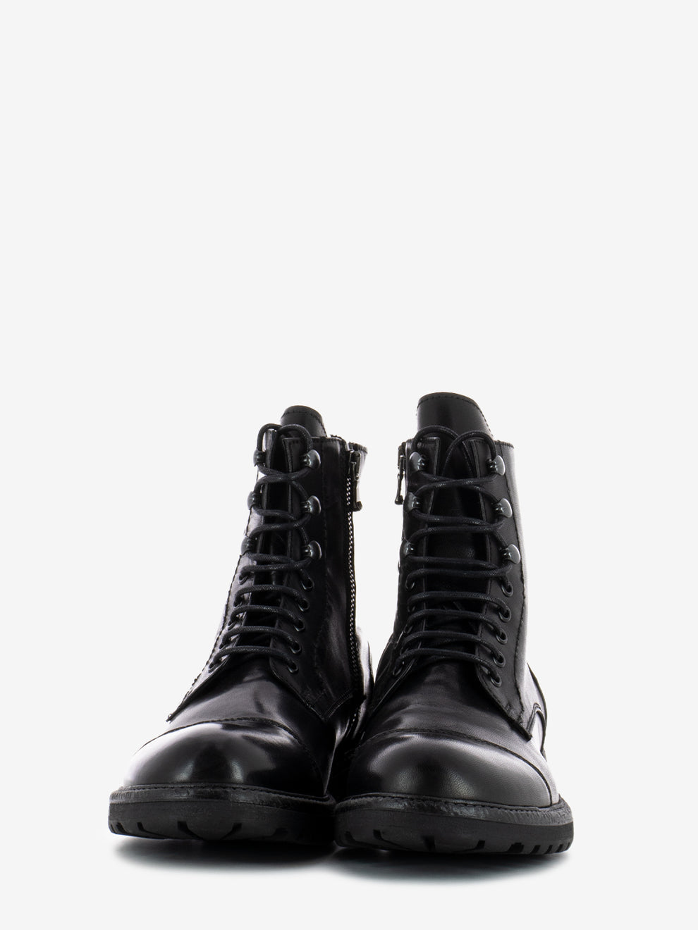 STIMM women's shoes represent the perfect balance of comfort, quality, and style, essential for completing any look with personality. Leather combat boots with a reinforced toe and side zip closure.