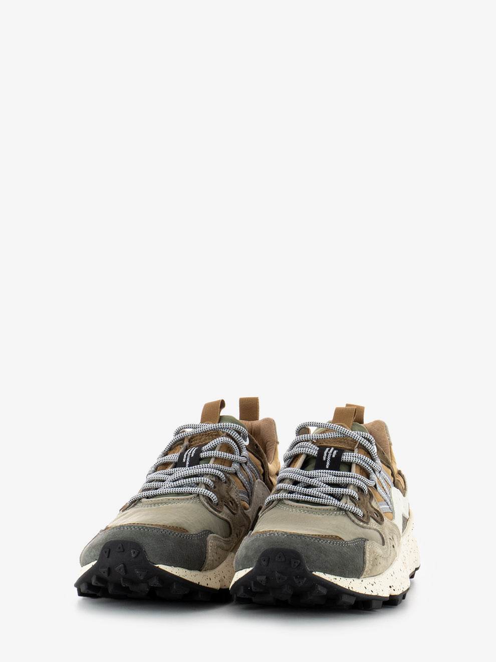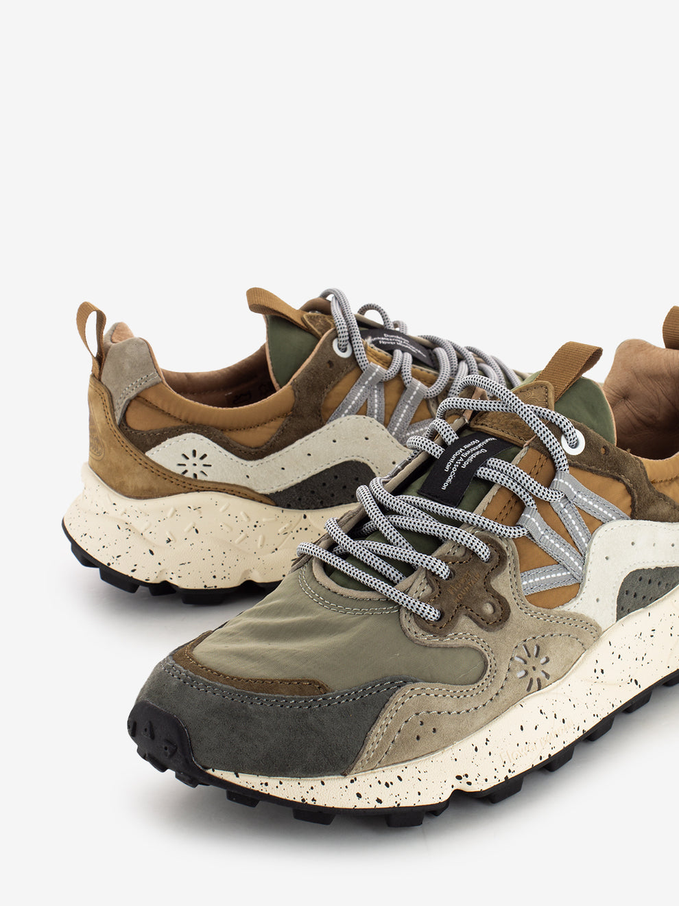 The Yamano sneakers by Flower Mountain are the brand's most iconic model, designed to blend outdoor aesthetics with urban comfort and featuring a technical design inspired by trail running. They feature a leather and nylon upper and the signature ultralight rubber outsole with a lug tread.