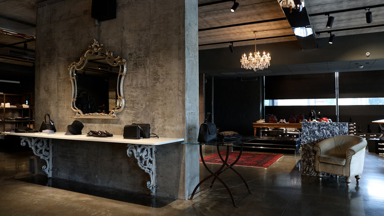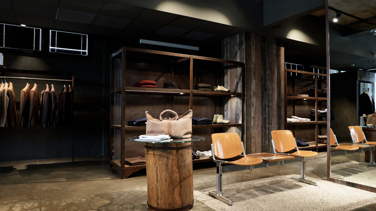 The space exudes harmonious contrasts: the roughness of concrete meets the warmth of reclaimed wood, creating a dialogue between industrial and natural that perfectly reflects the STIMM philosophy. It's not just about selling products, but about offering an aesthetic experience where the consumer witnesses a continuous transformation.